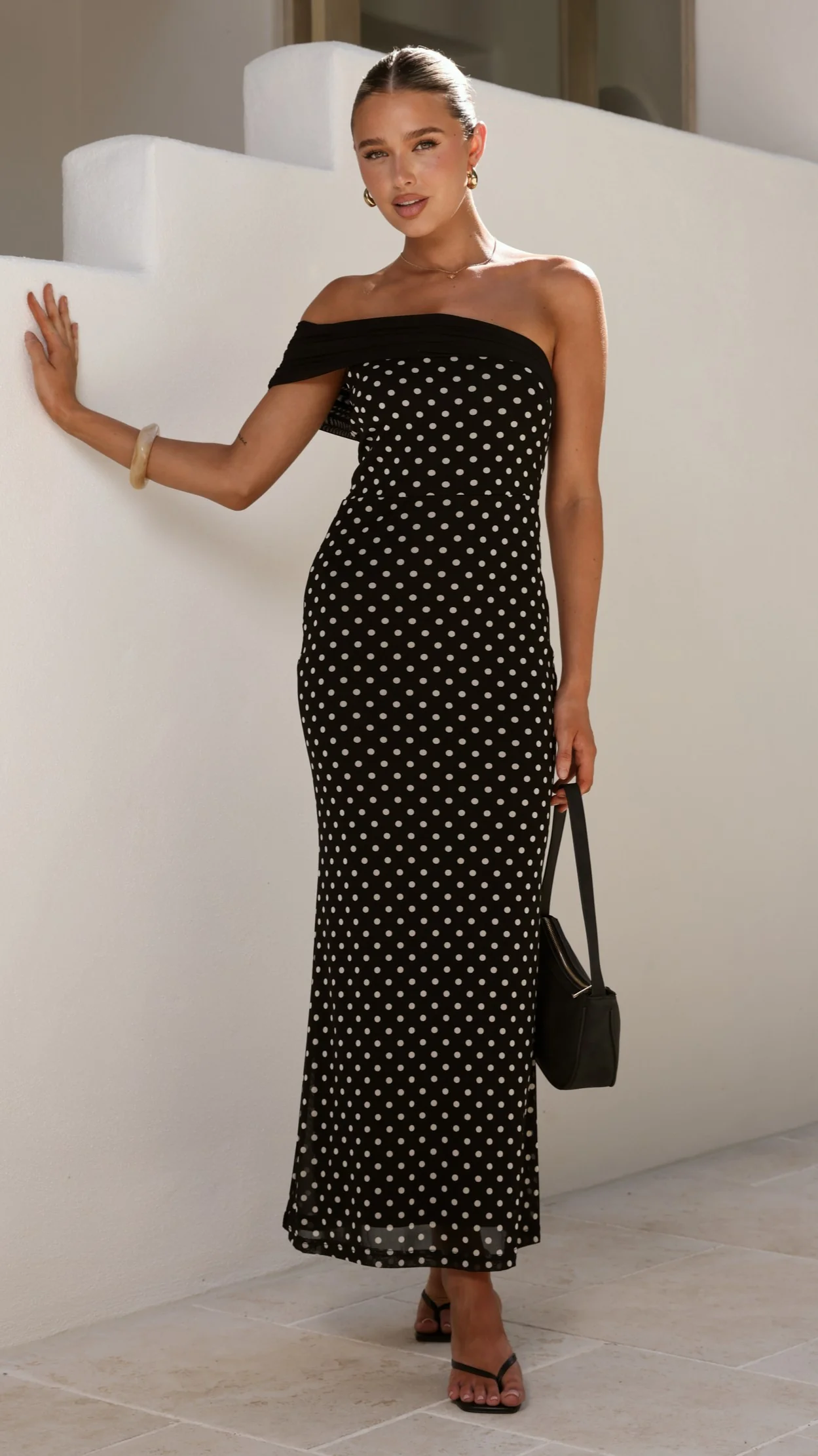 Gena Maxi Dress - White Polka